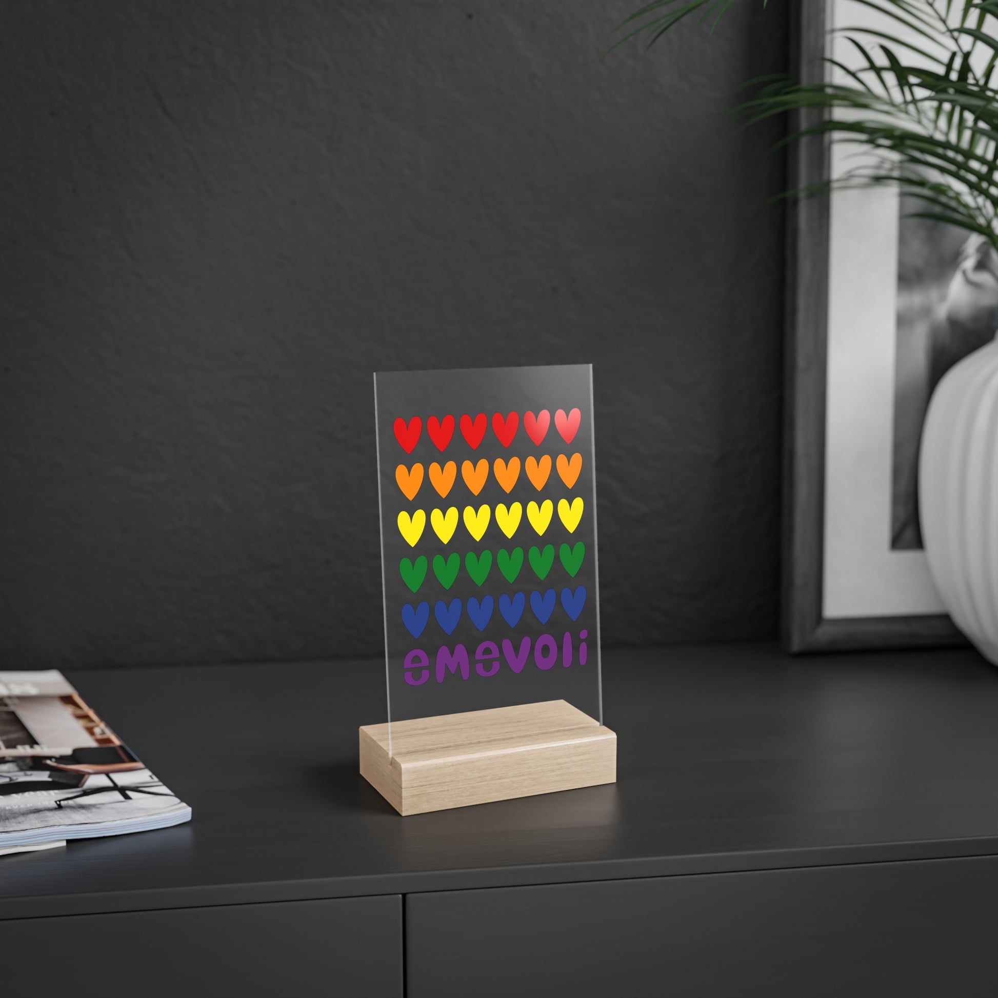 emevoli | Acrylic Sign with Wooden Stand | Pride Flag Colors