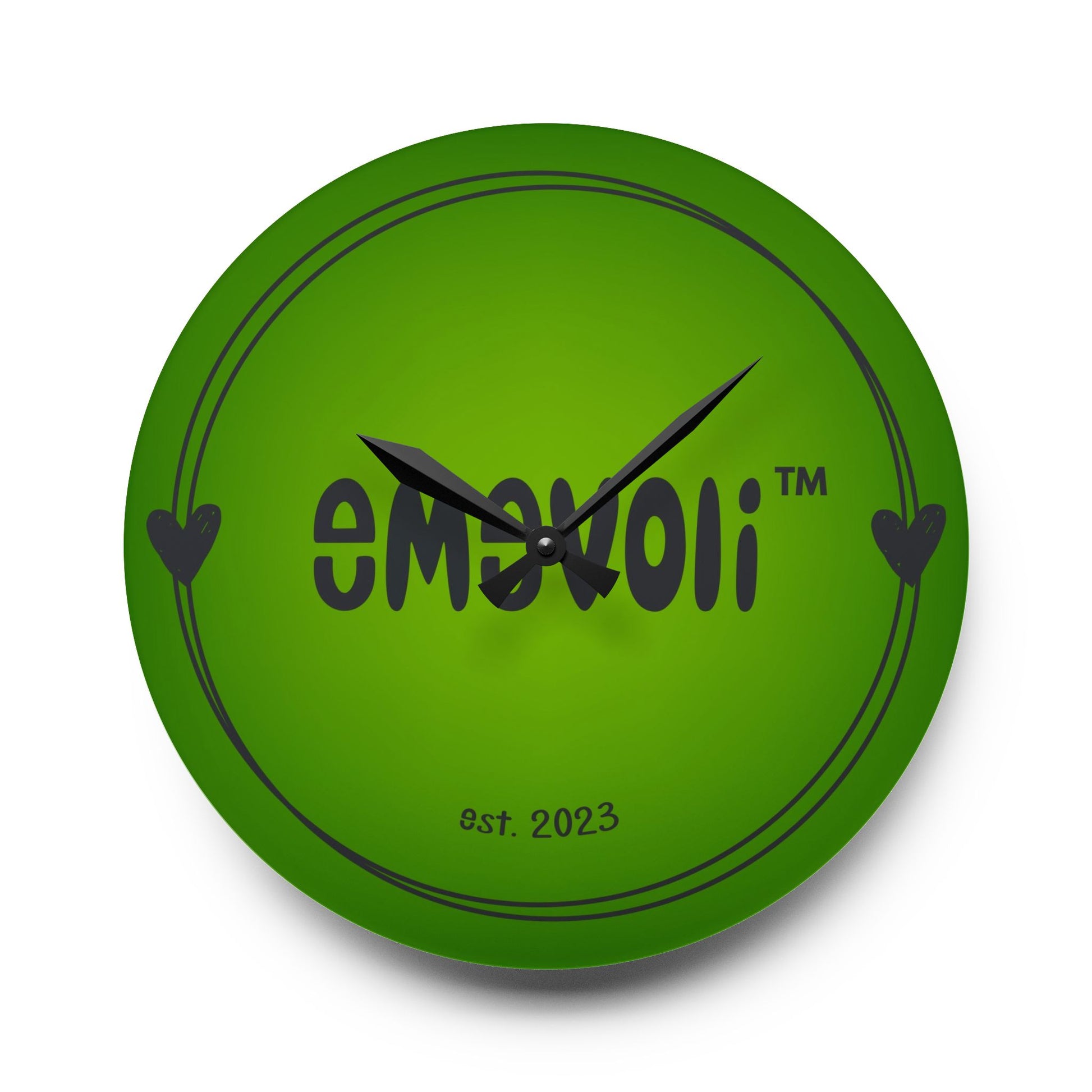 emevoli | Acrylic Wall Clock | Green with Black Logo