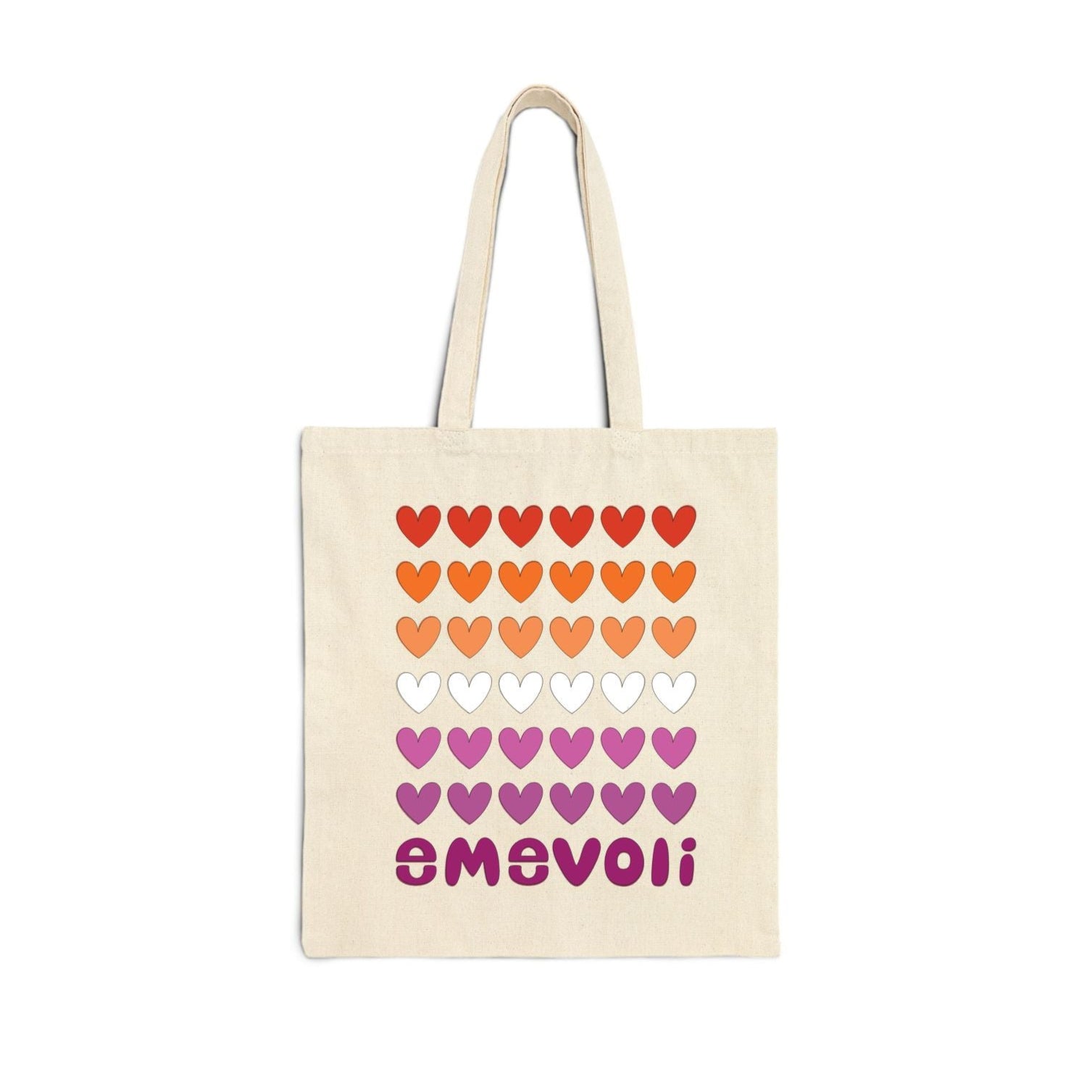 emevoli | Cotton Canvas Tote Bag | Lesbian Flag Colors